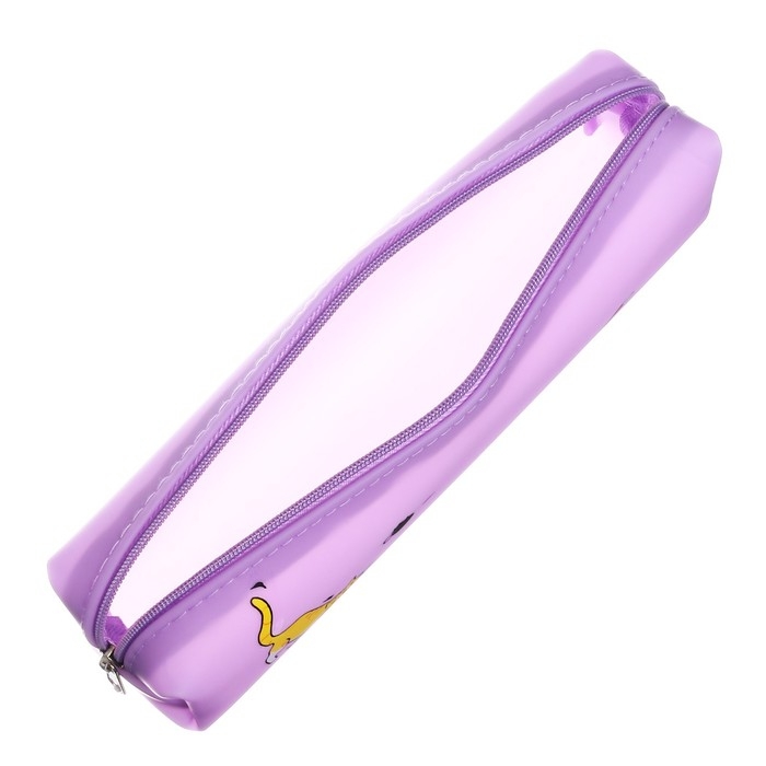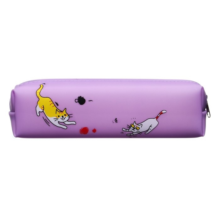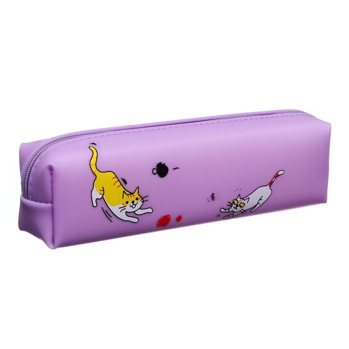 Пенал школьный "Кот", на молнии, силиконовый, сиреневый