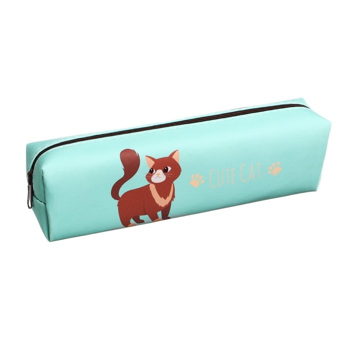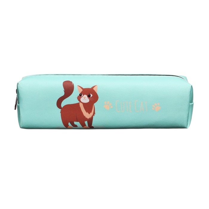 Пенал школьный "Кот" на молнии, зеленый
