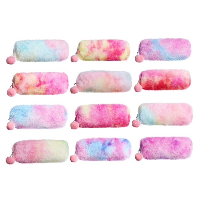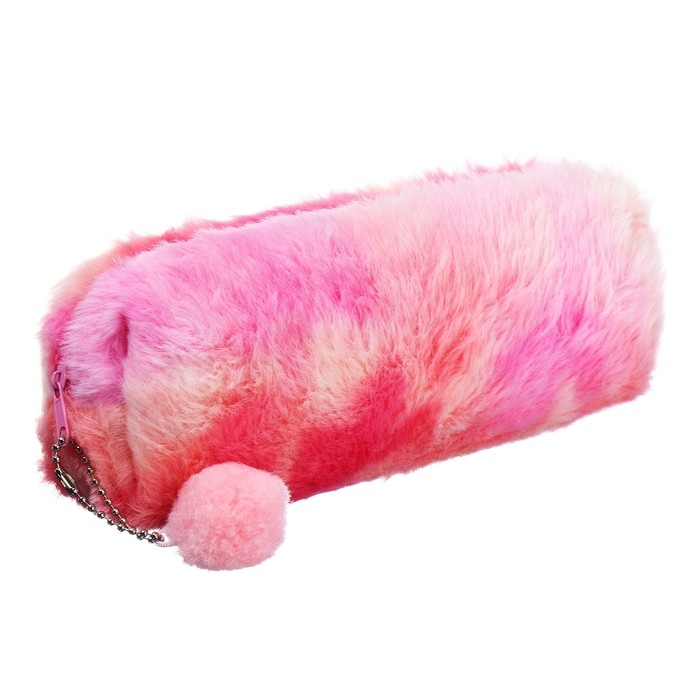 Пенал школьный меховой на молнии Calligrata "Бамбошка", микс