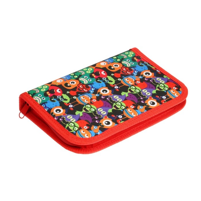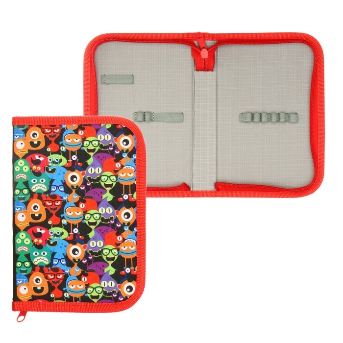 Пенал школьный на молнии 13 х 19,5 см "Монстрики", ткань, 1 секция