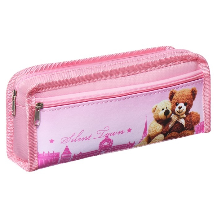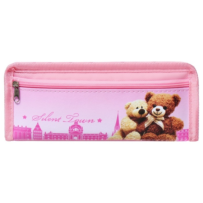 Пенал школьный на молнии Calligrata "Мишки", 2 отделения, розовый