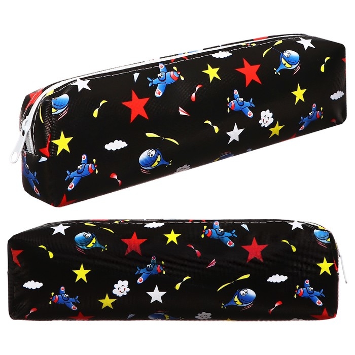 Пенал школьный на молнии Calligrata "Самолеты", чёрный