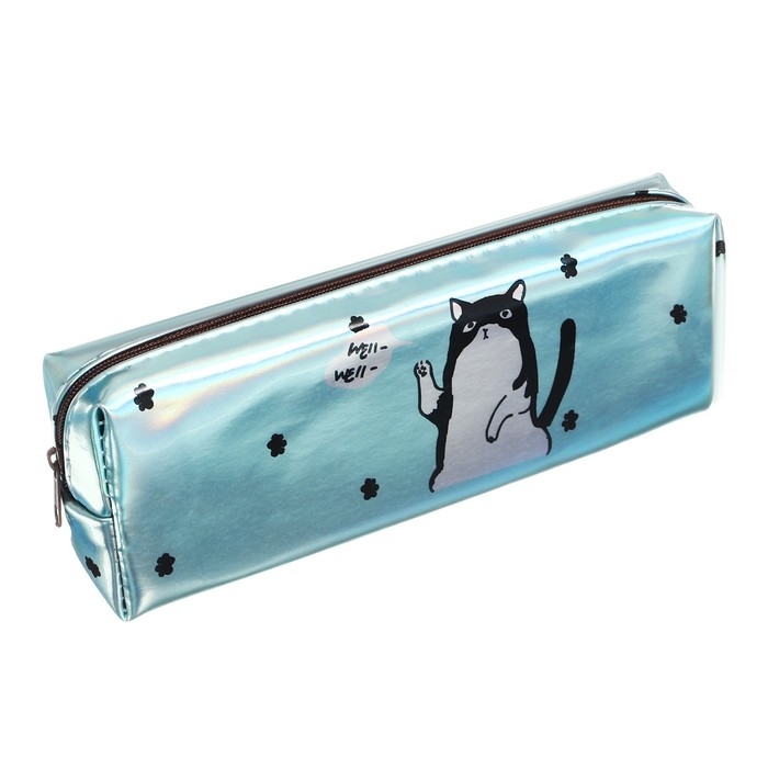 Пенал школьный, на молнии голографический "Кот Голубой"