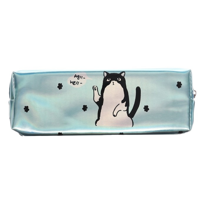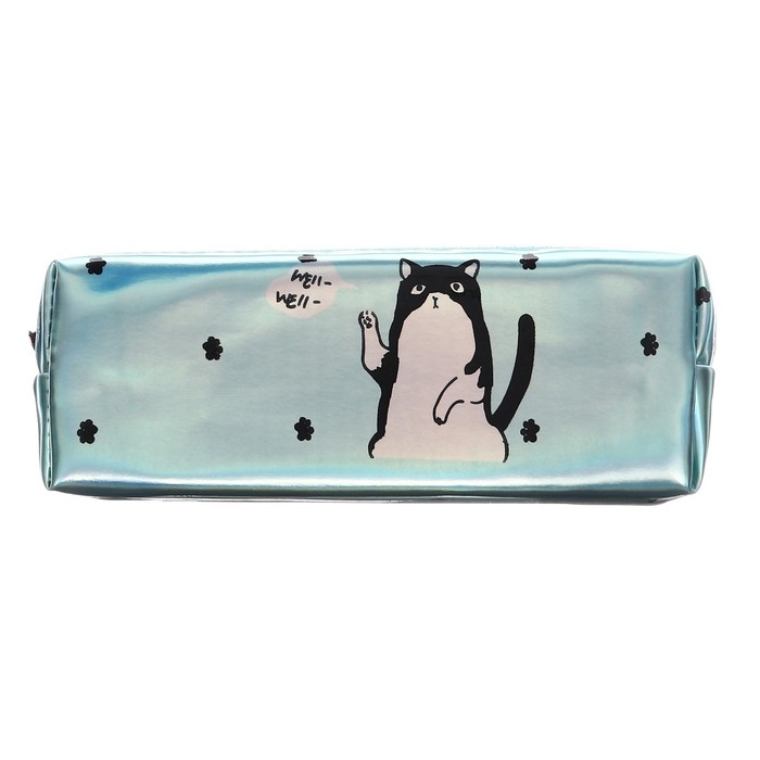 Пенал школьный на молнии голографический "Кот"