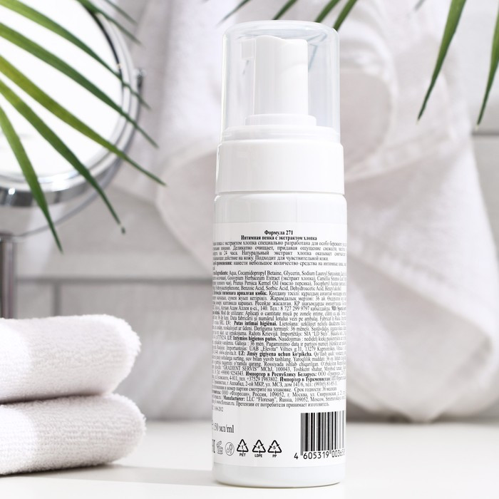 Пенка для интимной гигиены для чувствительной кожи Floresan с экстрактом хлопка, 150 мл