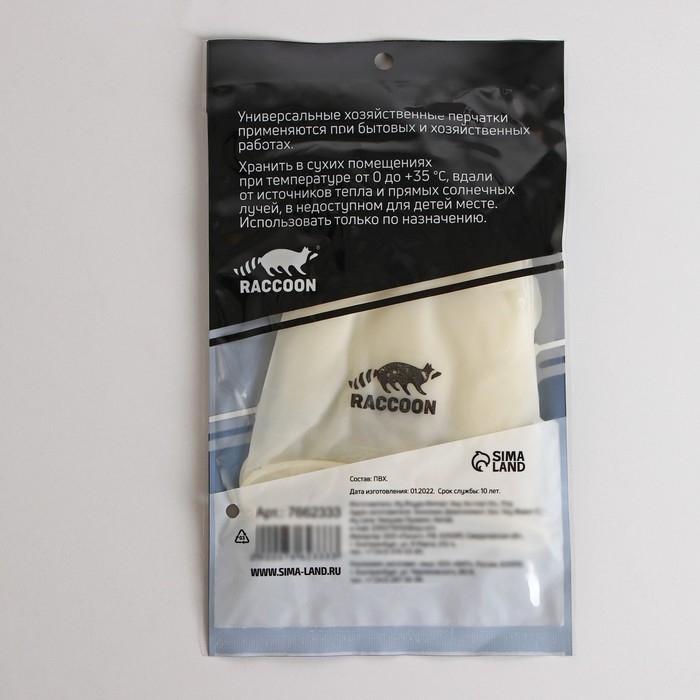 Перчатки хозяйственные Raccoon, размер S, цвет белый