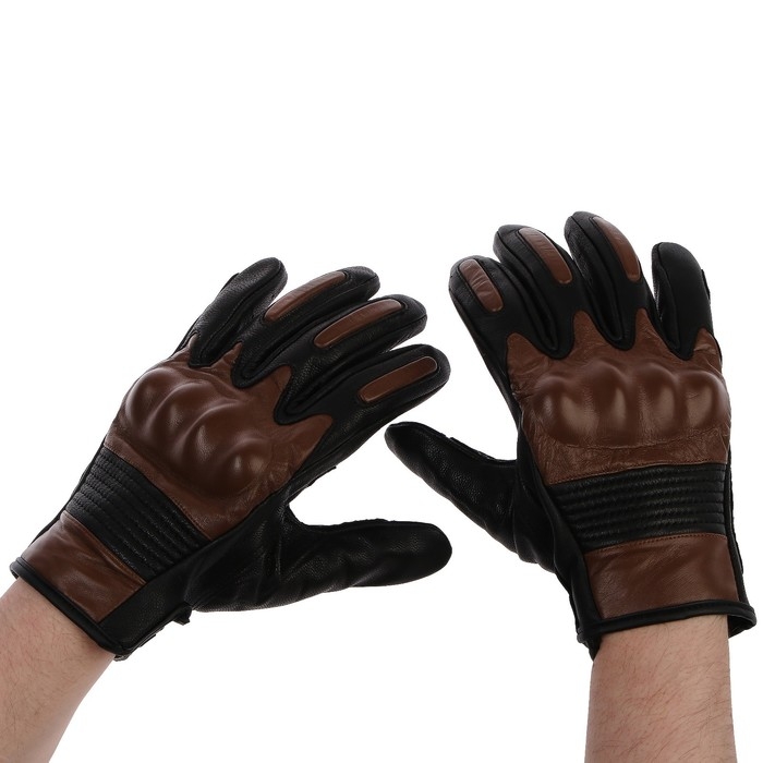 Перчатки мотоциклетные с защитными вставками, кожаные, размер L, коричневые