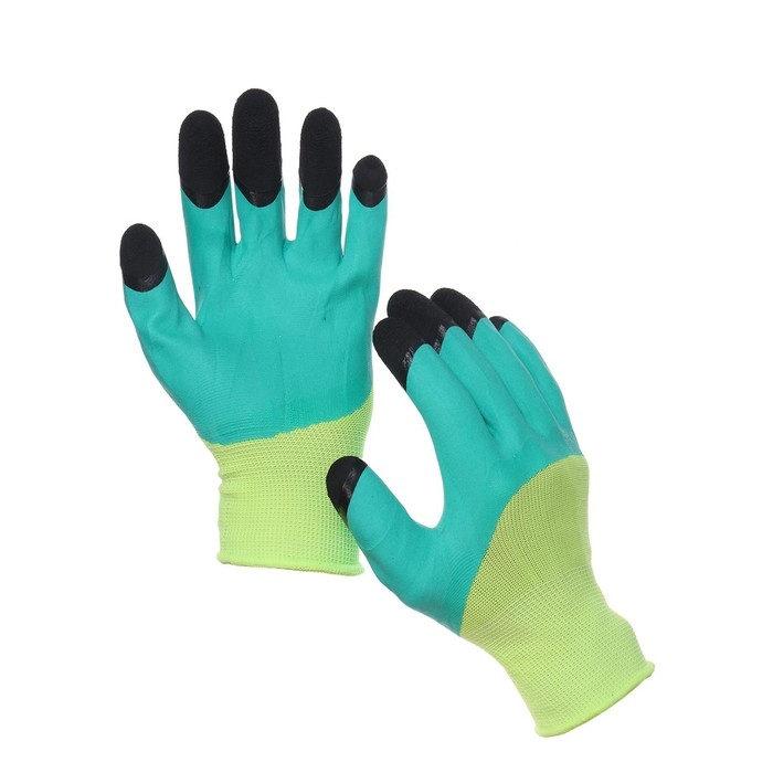 Перчатки нейлоновые, с латексным обливом, размер 9, зелёные