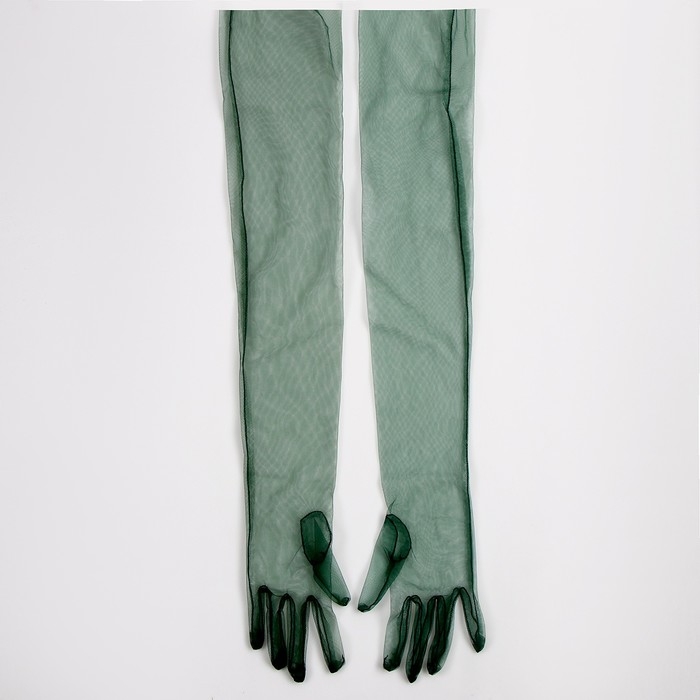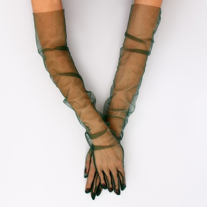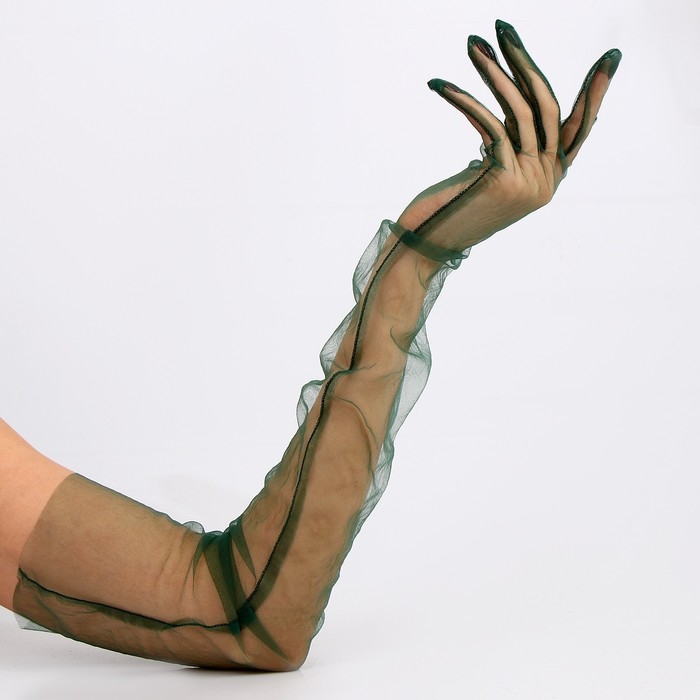 Перчатки женские прозрачные, цвет темно-зелёный, длинные