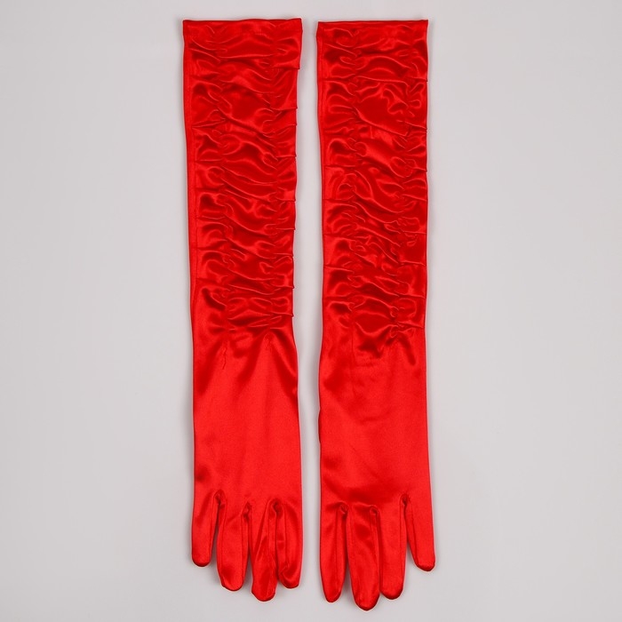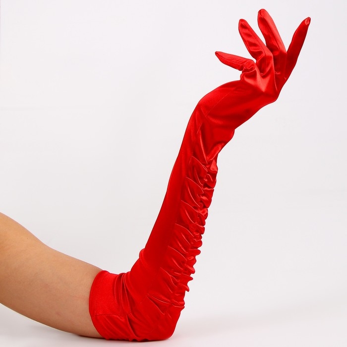 Перчатки женские со сборкой, цвет красный, длинные