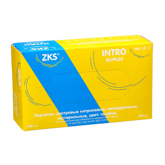 Перчатки ZKS нитриловые Intro Duplex голубые упакованы по 100 пар в упаковке, что делает их удобными для использования в различных сферах деятельности. Они идеально подходят для использования в медицинских учреждениях, косметологических кабинетах, пищевой промышленности и других местах, где требуется соблюдение гигиенических норм.