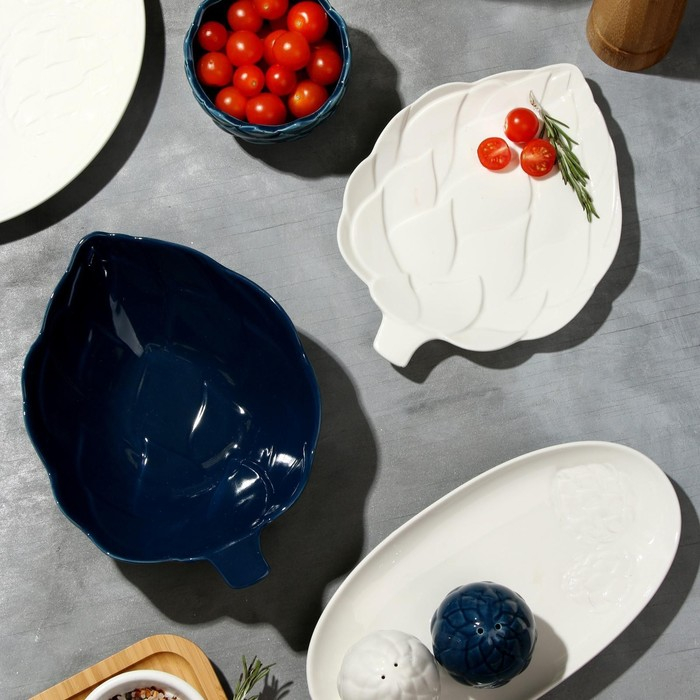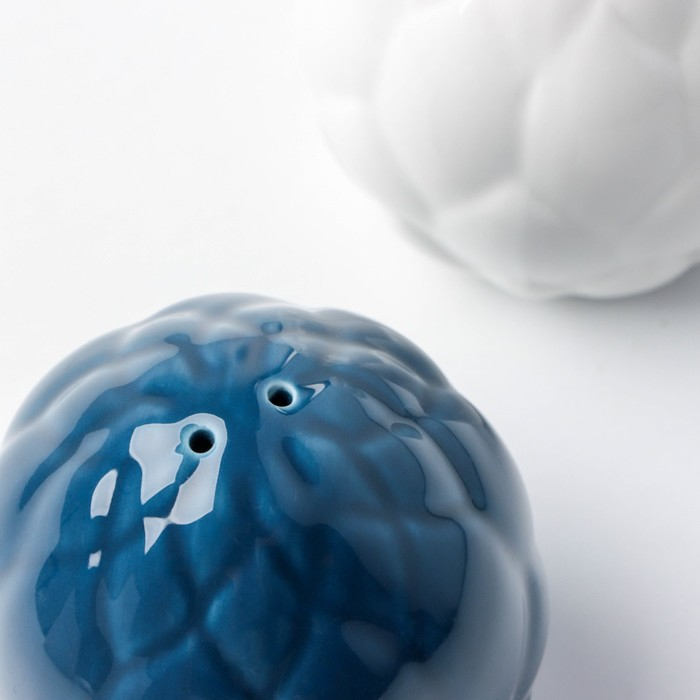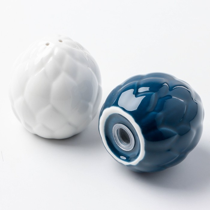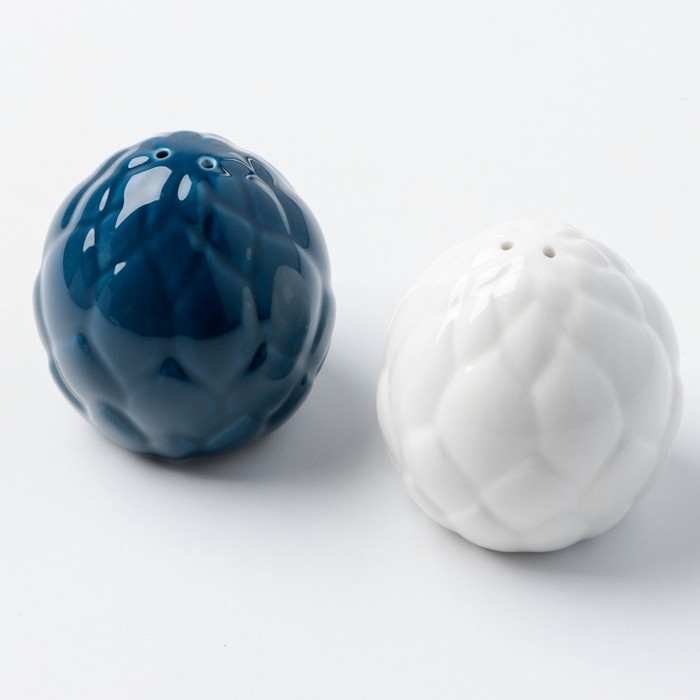 Перечница и солонка из керамики «Артишок», белая и синяя 6 х 6.5 см, цвет белый-синий