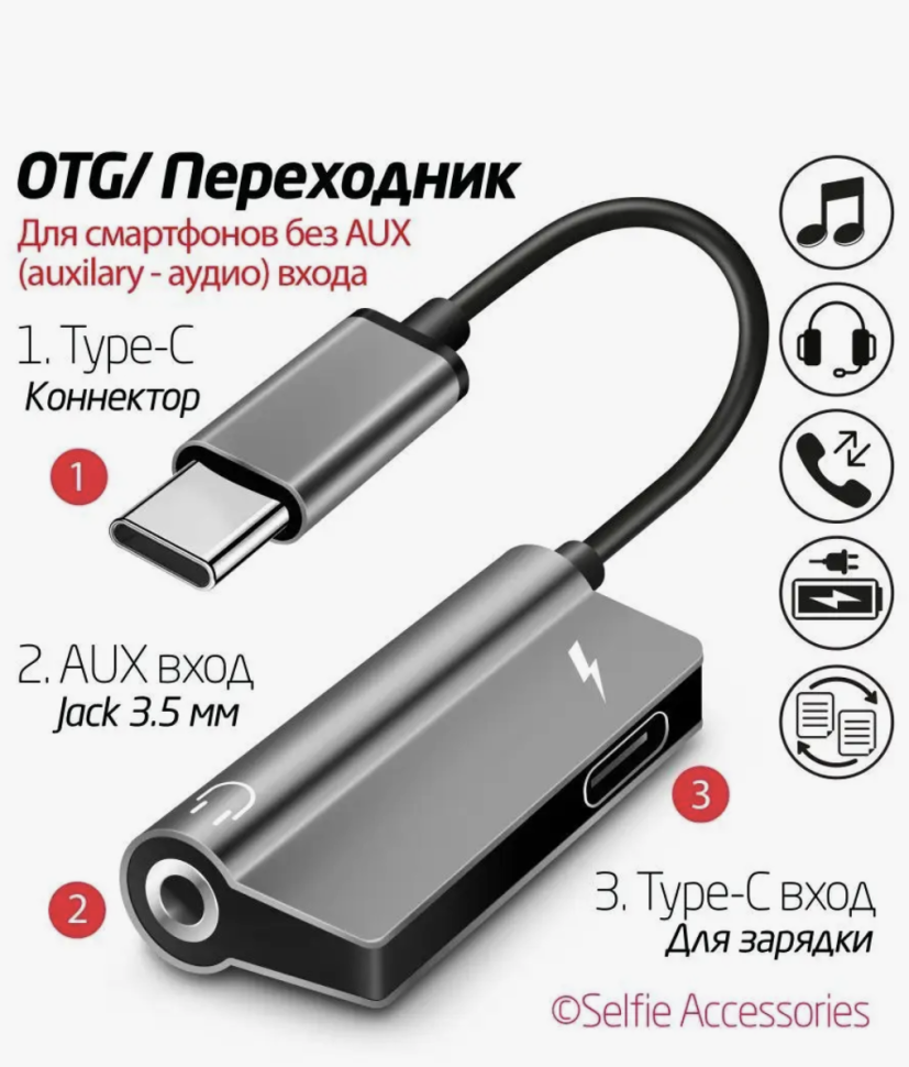 Переходник Type-C на 3.5mm Jack + Type-C P-11