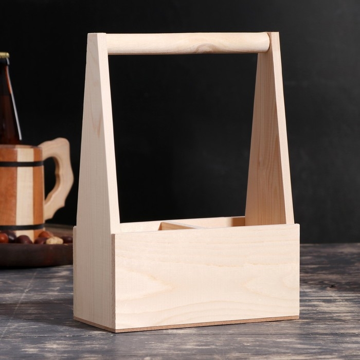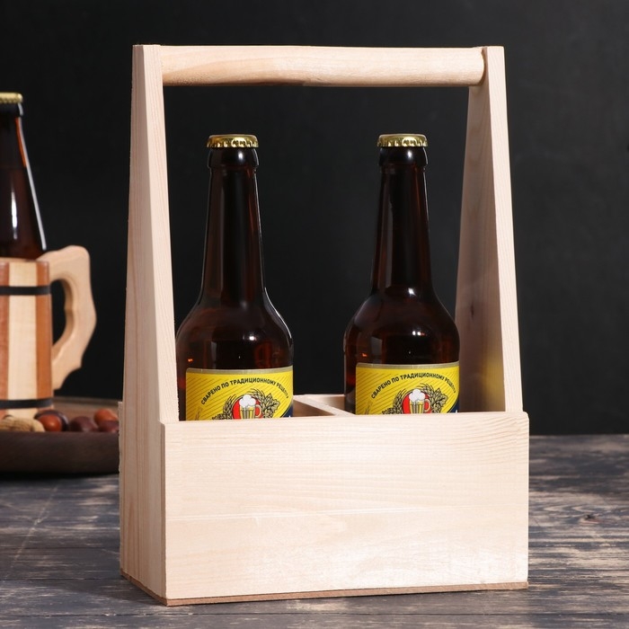 Переноска для 2 бутылок с деревянной ручкой, 21х11,5х30,5 см, натуральная