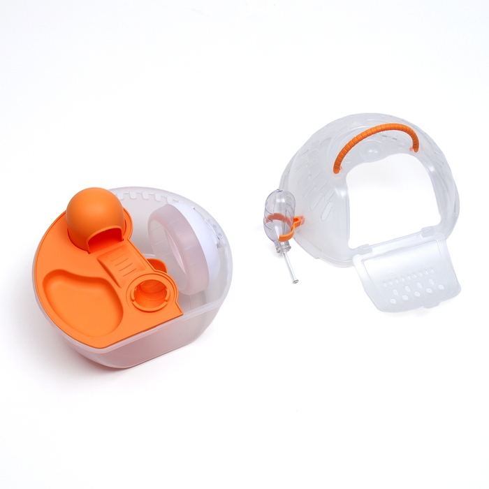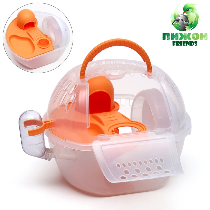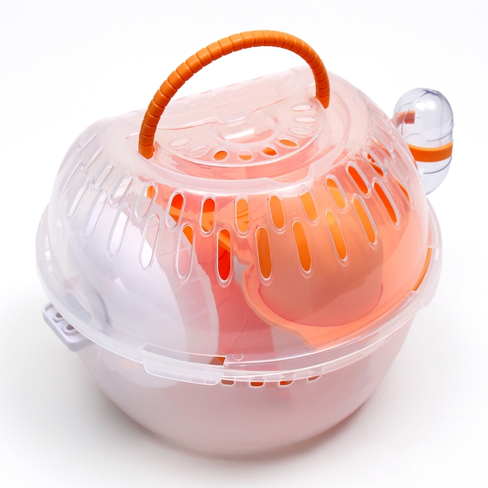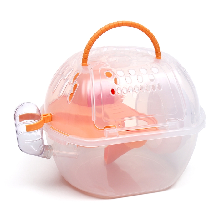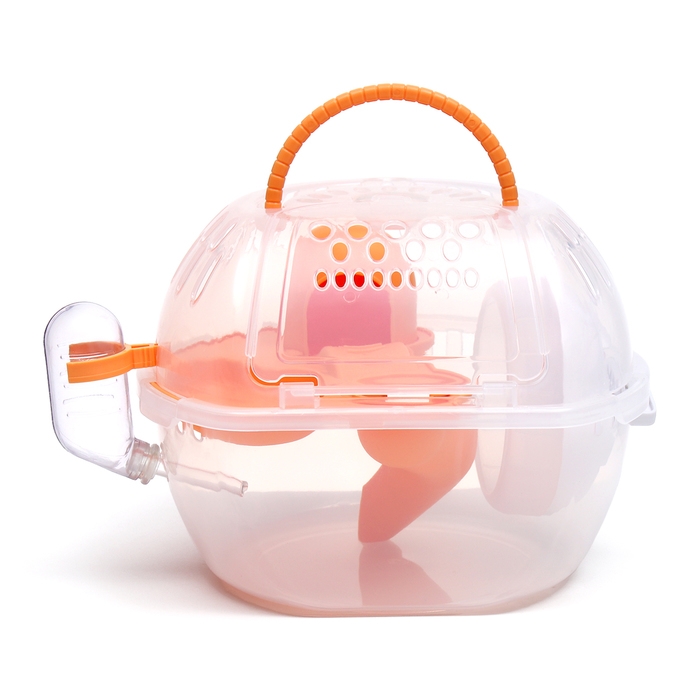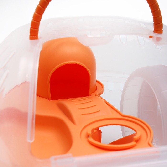 Переноска для грызунов Carno с домиком, полкой, поилкой, 29х23х23 см, жёлтая