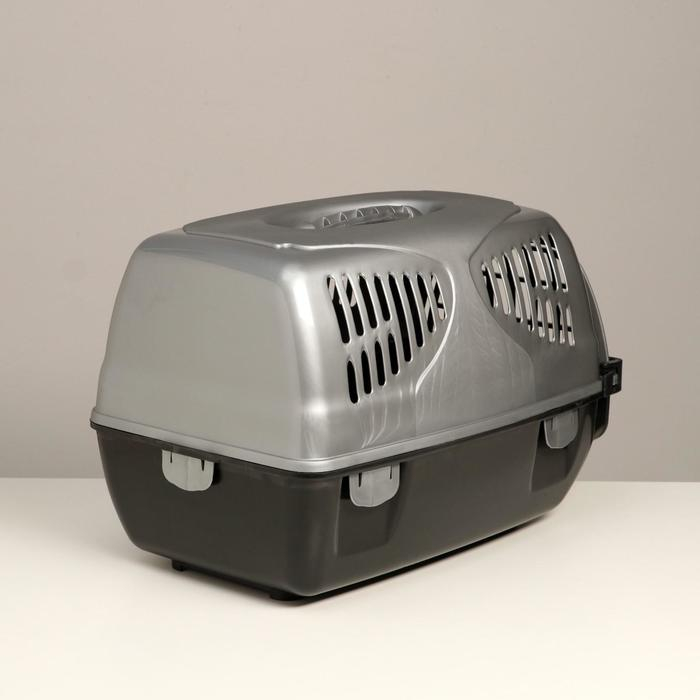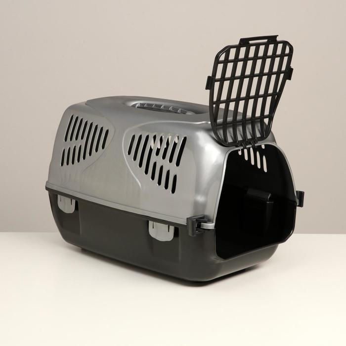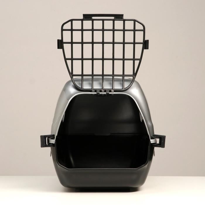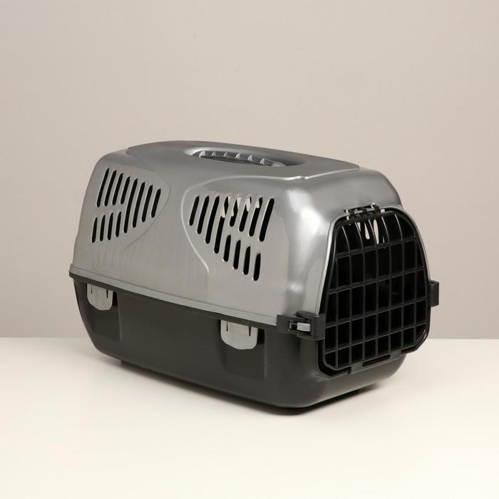 Переноска для животных с пластиковой дверью, 40 х 32 х 26, серая