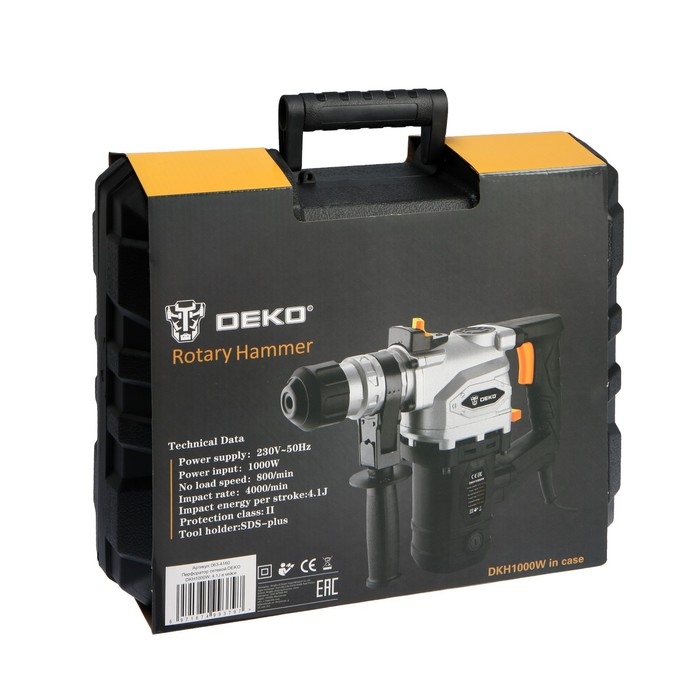 Перфоратор DEKO DKH1000W, 1000 Вт, SDS+, 4.1 Дж, 3 режима, 4000 уд/мин, 800 об/мин, кейс