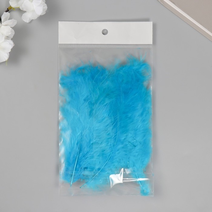 Перо декоративное гусиное пуховое "Голубое озеро" набор 40 шт h=10-15 см