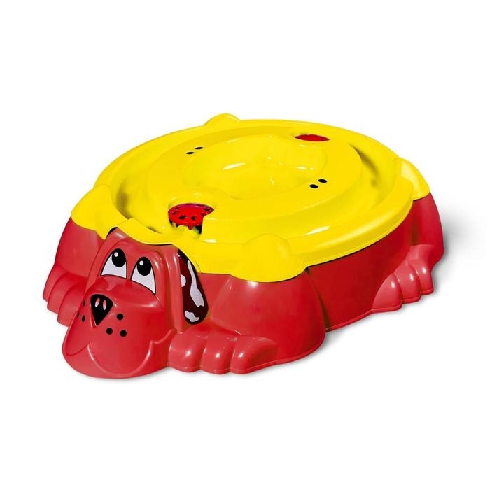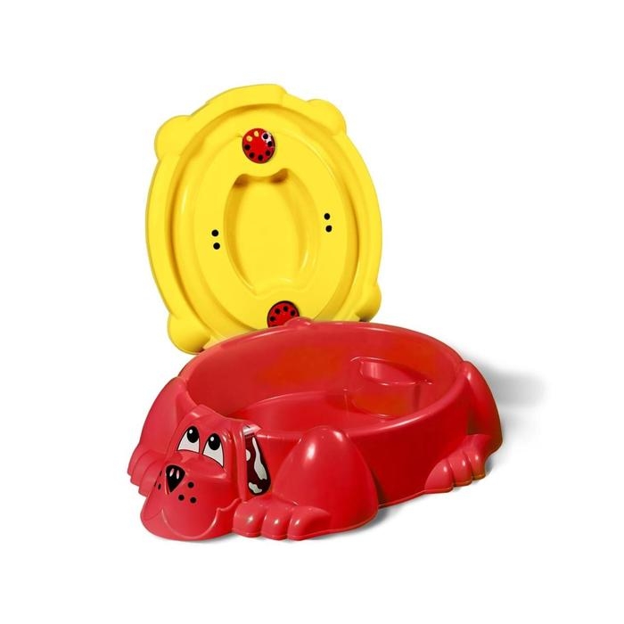 Песочница «Собачка» с крышкой, цвет красный/жёлтый