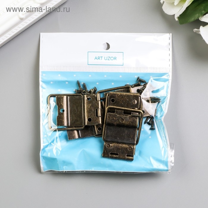 Петля накладная с упором угол открывания 90 градусов + гвозд. бронза набор 5 шт 4,8х2,4 см