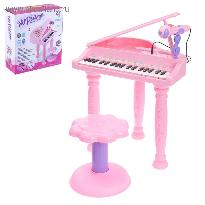Пианино «Розовая мечта» с микрофоном и стульчиком, световые и звуковые эффекты