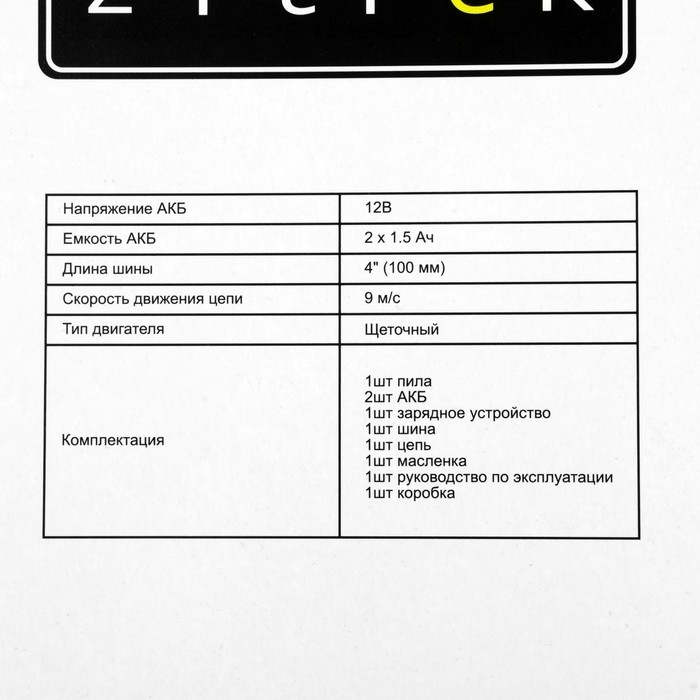Пила цепная аккумуляторная Zitrek GreenSaw 12 082-1859, 12 В, 1.5 Ач, Li-ion АКБх2 шт, ЗУ