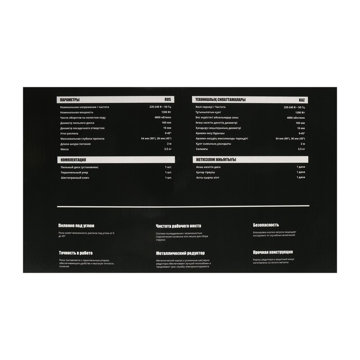 Пила циркулярная Kolner KCS 160/1300, 1300 Вт, 4800 об/мин, d=160 мм, параллельный упор