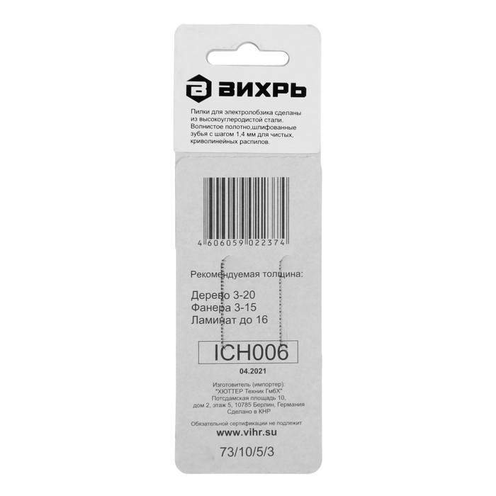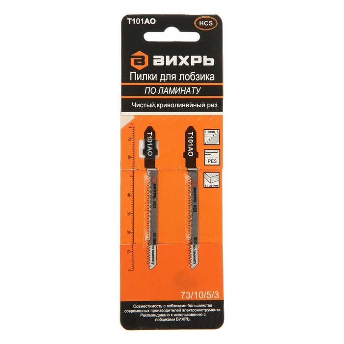 Пилки для лобзика "Вихрь" Т101АО, по ламинату, чистый, криволинейный рез, 76 х 50 мм, 2 шт.