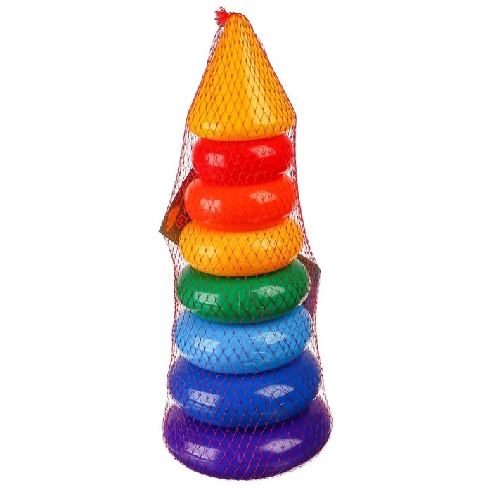 Пирамидка «Синий трактор», 7 колец с конусом