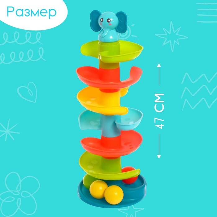 Яркие шарики привлекут внимание малыша, он с удовольствием будет скатывать их по спирали и слушать забавные звуки.
