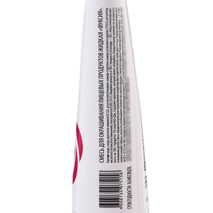 Рекомендации к применению: перед применением проколите пломбу тюбика (срезать не рекомендуется), внесите необходимое количество красителя в продукт и закрутите крышку. Рекомендуемая дозировка 2-3 капли (1-1,5 грамма) на 100 грамм продукта.