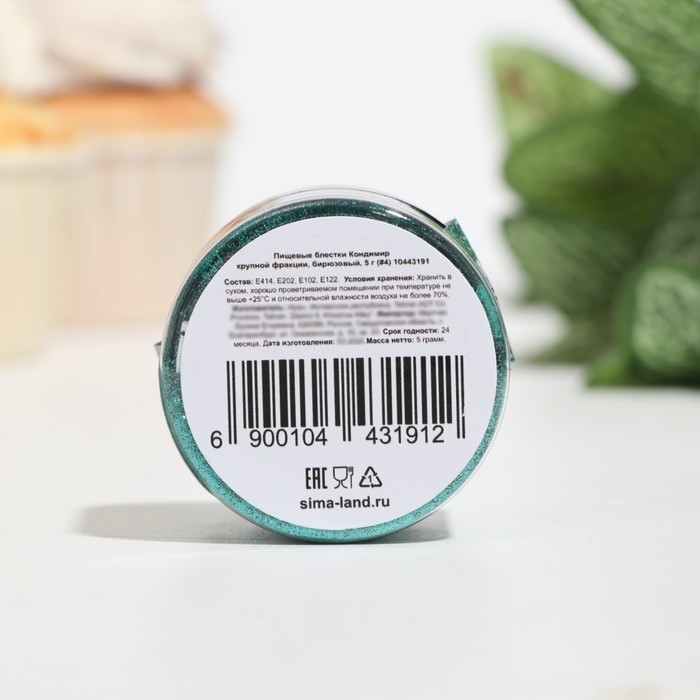 Пищевые блёстки КондиМир крупной фракции, бирюзовые, 5 г