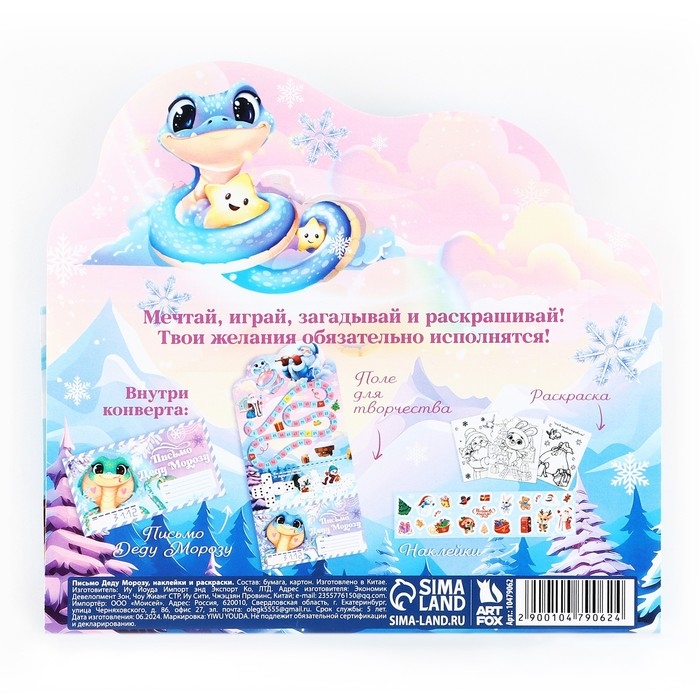 Набор с письмом Деду Морозу — это отличный подарок для ребёнка, который позволит ему окунуться в атмосферу новогодних чудес. В наборе есть три листа с раскрасками и яркими наклейками. Оформление комплекта выполнено в новогодней тематике. Ребёнок сможет написать письмо Деду Морозу, раскрасить картинки и украсить их наклейками.