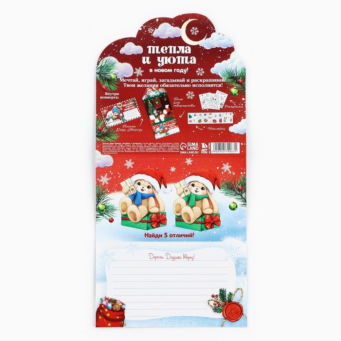 Письмо Деду Морозу «Новый год: Тепла и уюта» с наклейками, раскраски 3 листа
