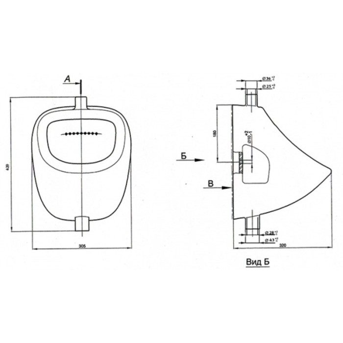 - Писсуар имеет следующие размеры: высота — 420 мм, глубина — 320 мм.