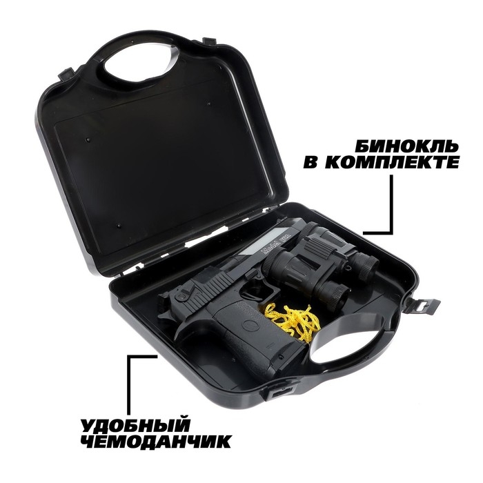 С пистолетом Desert Eagle и биноклем малыш почувствует себя храбрым героем, способным выиграть в любой схватке.