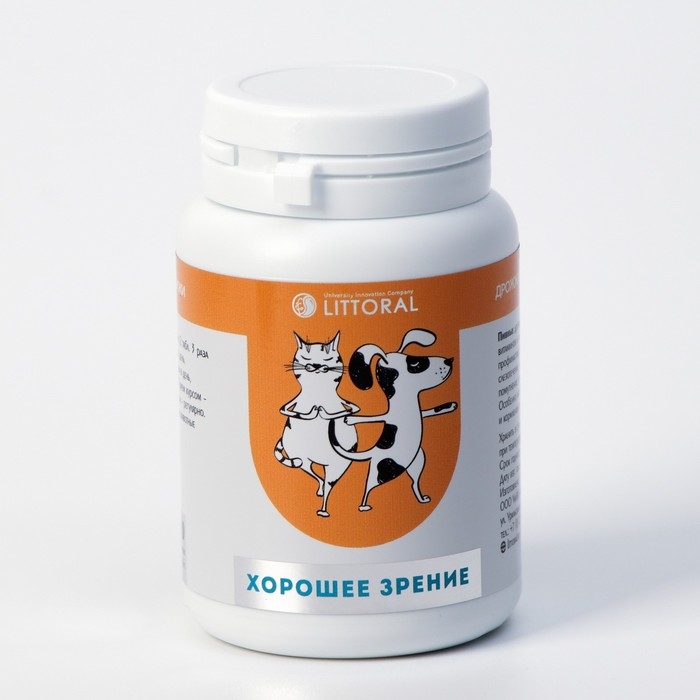 Пивные дрожжи "Хорошее зрение" для кошек и собак, с бета-каротином, 80 таб