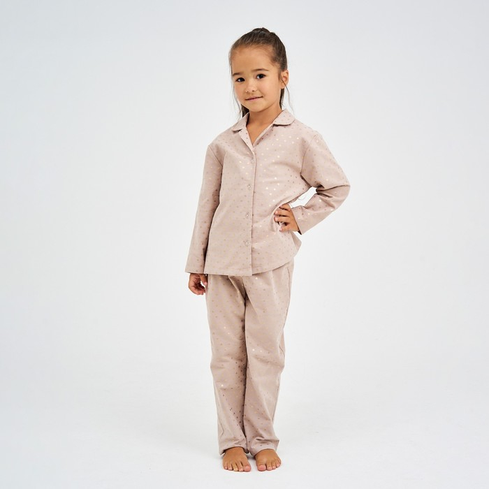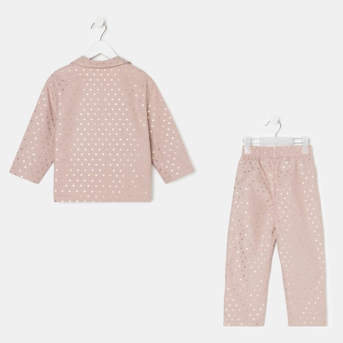 Пижама детская из фланели (рубашка, брюки) KAFTAN "Сердечки", рост 98-104, бежевый