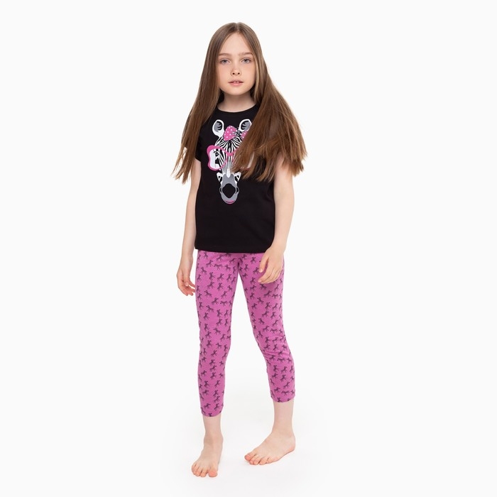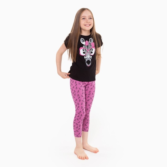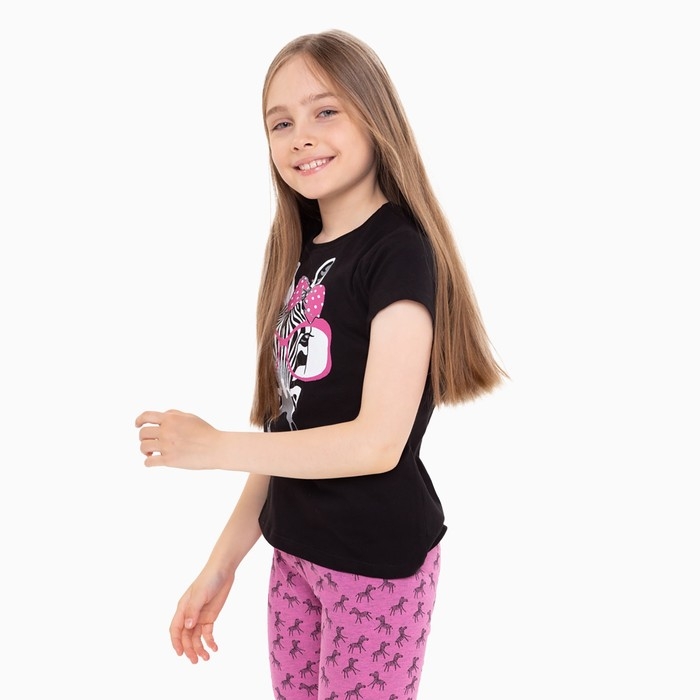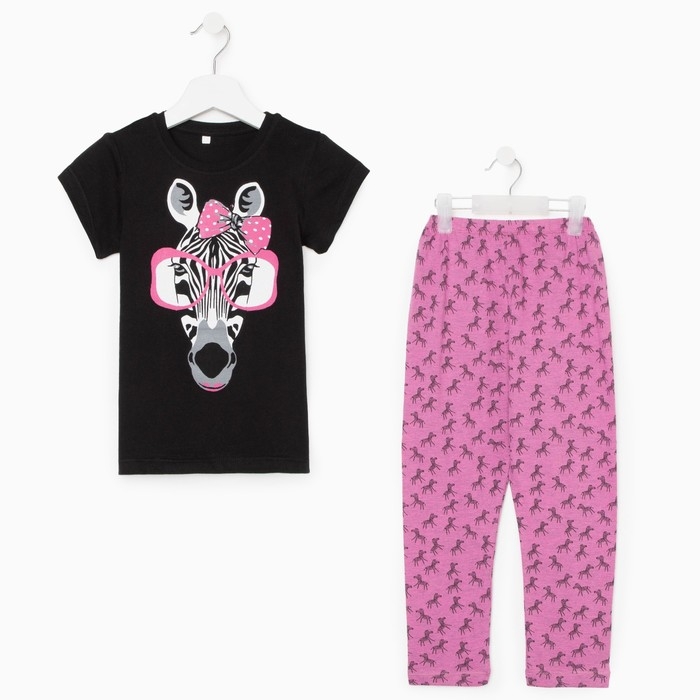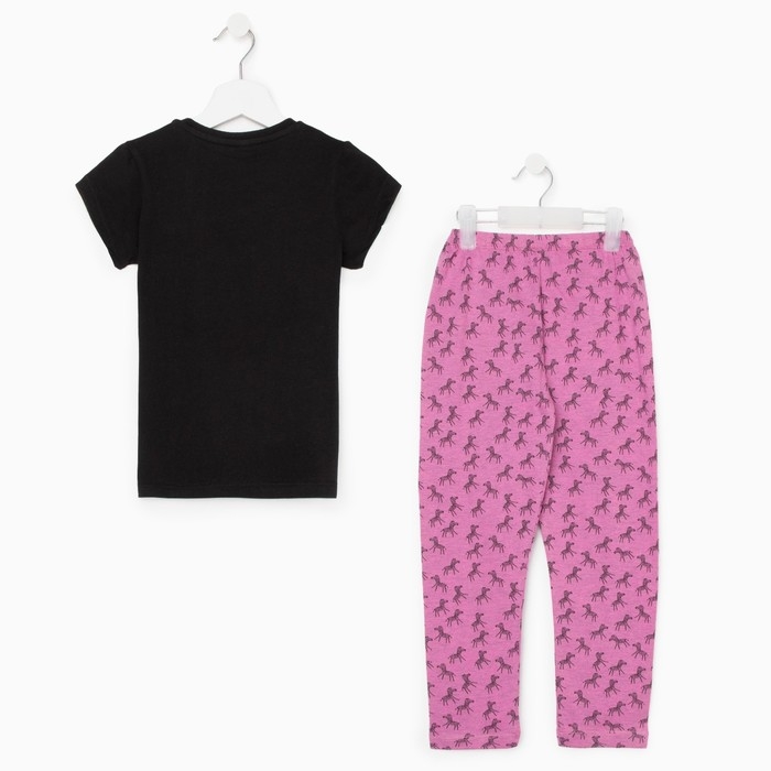 Пижама для девочки, цвет чёрный/розовый, рост 98 см