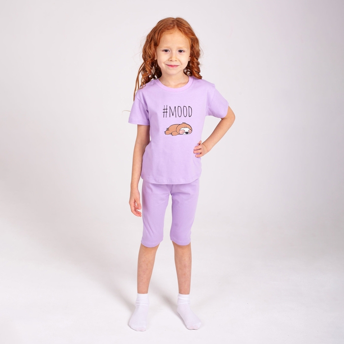 Пижама для девочки (футболка/шорты), цвет сиреневый, рост 116 см