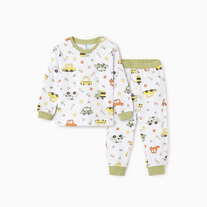 Пижама для мальчика (лонгслив/брюки), цвет белый/машины, рост 110 см