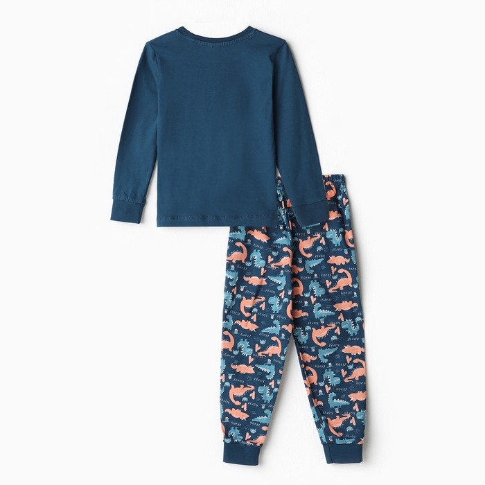 Пижама для мальчика (лонгслив/штанишки), цвет синий/дракон, рост 98 см