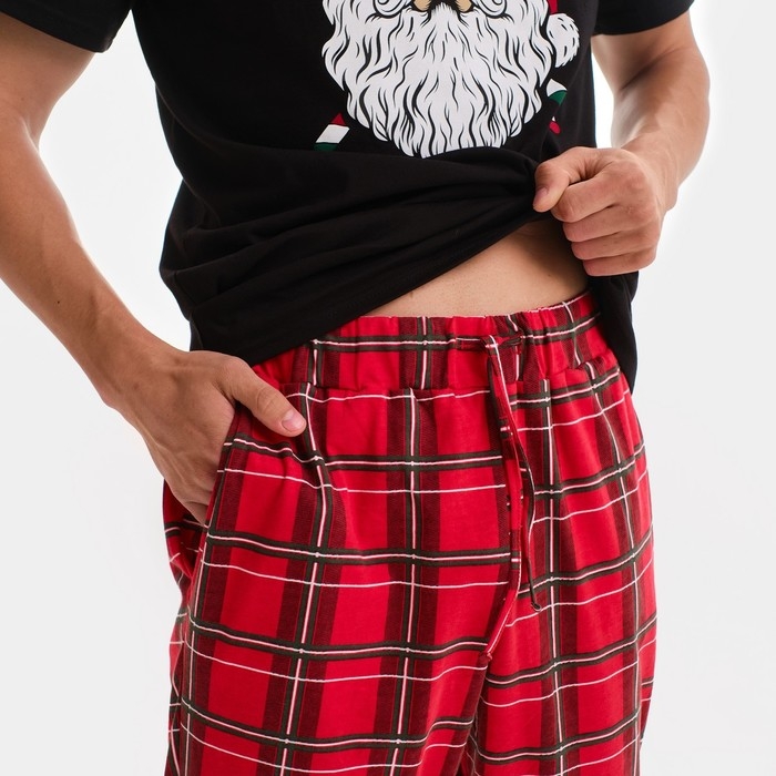 Пижама новогодняя мужская KAFTAN "Дед Мороз", цвет красный/чёрный, размер 52