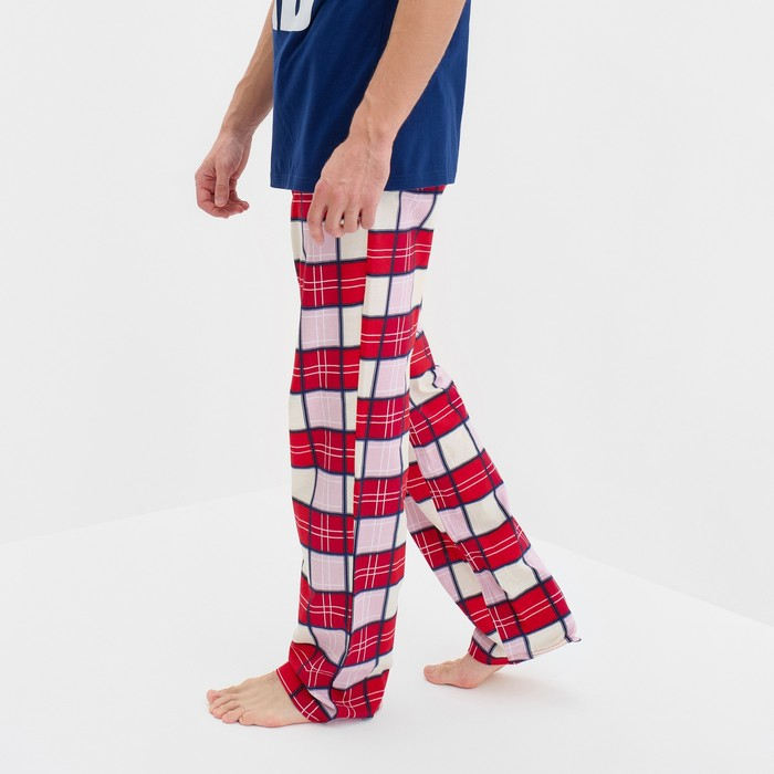 Пижама новогодняя мужская KAFTAN "Santa team", цвет синий/красный, размер 50