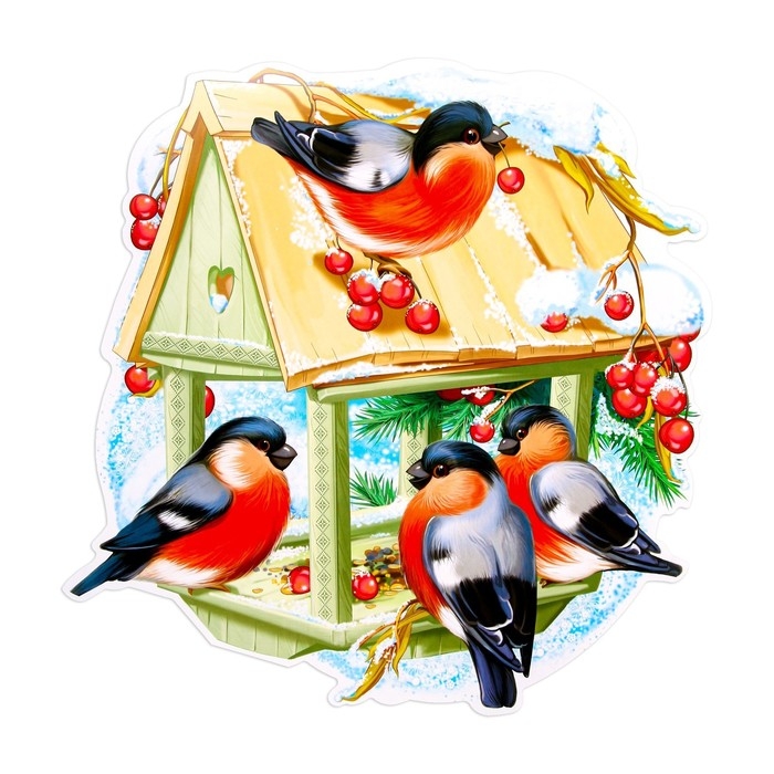 Плакат фигурный "Кормушка со снегирями" 49х45см