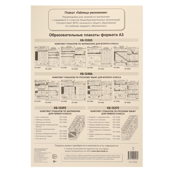 Плакат "Таблица умножения" в пакете европодвес, 34 х 49 см