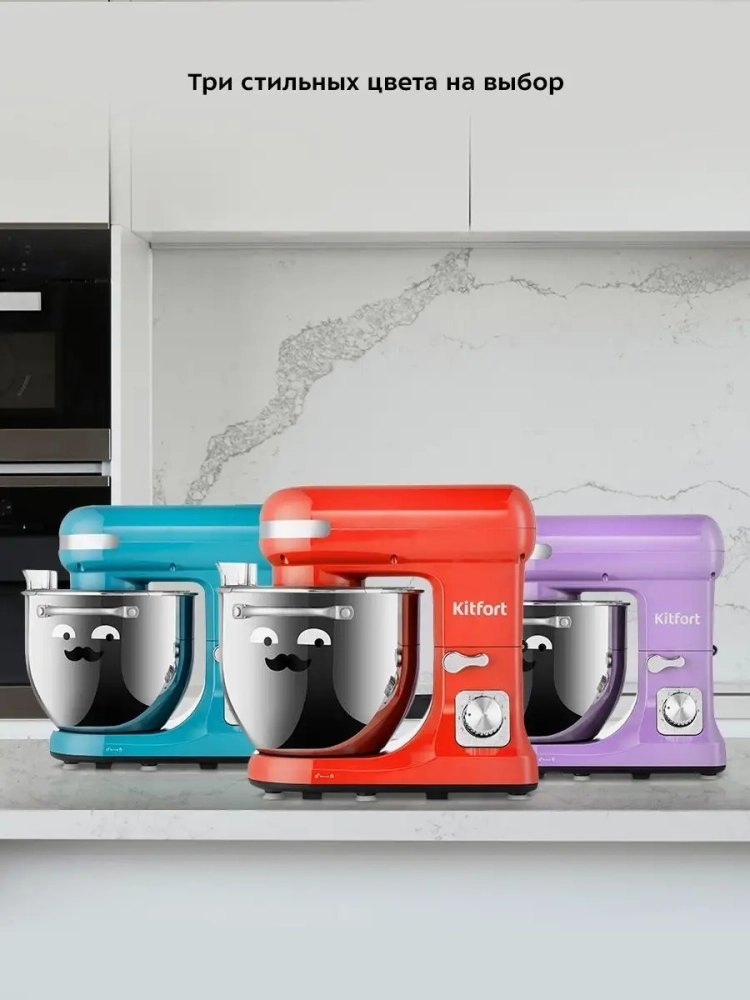 Планетарный миксер Kitfort КТ-3416 поможет вам смешать ингредиенты для любого блюда, взбить яичный белок или сливки, приготовить картофельное пюре, мусс, крем, соус, замесить жидкое тесто для блинов или крутое для пельменей и пирогов.
