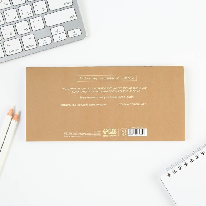 Недельный разворот включает в себя, окошко на каждый день недели и общий список дел.