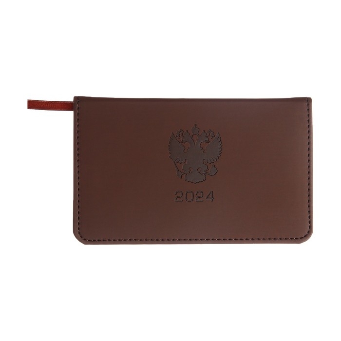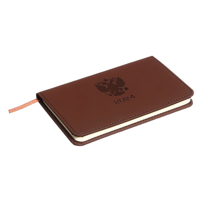 Планинг карманный датированный 2024 года, 155 х 95 мм, 64 листа, deVENTE.Emblem, твёрдая обложка из искусственной кожи, кремовый блок 70 г/м2, коричневый