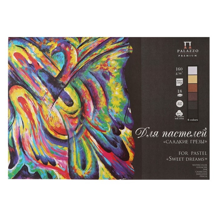 Замечательно подходит для художественных техник, таких как пастель, масляная пастель, мел, карандаш или уголь, сангина. Планшет состоит из 18 листов и 6 цветов пастельной бумаги с жесткой подложкой из переплетного картона. Внутренний блок для удобства проклеен с 2-х сторон по корешку. Бумага внутреннего блока имеет плотность 160 г/м2, состоит из 40 % хлопкового волокна и имеет тиснение "холст" с одной стороны, как все импортные аналоги, предназначенные для пастельных работ. Каждое изделие упаковано в термоусадочную пленку.